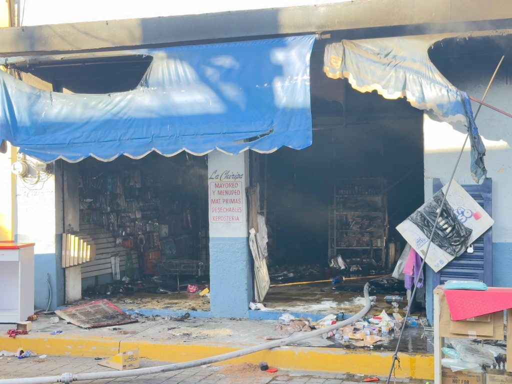Un negocio de dulcería y plásticos denominado ‘La chiripa‘ que se encuentra por la calle Morelos, a un costado del ‘mercado Morelos’, comenzó a ser consumido por las llamas que se esparcían rápidamente dado el material que se encontraba dentro.