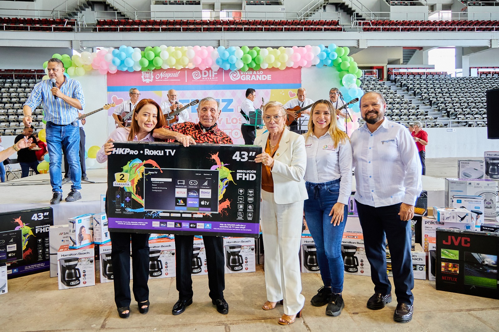 Con el objetivo de fomentar la convivencia y diversión de las personas adultas mayores, el gobernador del estado, Miguel Ángel Navarro Quintero y su esposa, la presidenta del Sistema DIF Nayarit, doctora Beatriz Estrada Martínez, encabezaron el festejo del Día de la Abuela y el Abuelo, ofrecido por el Corazón de Tu Gobierno, a través de la coordinación Vivir a lo Grande, a las y los integrantes de los clubes de la tercera edad de Tepic y Xalisco, y de la Casa del Abuelo.