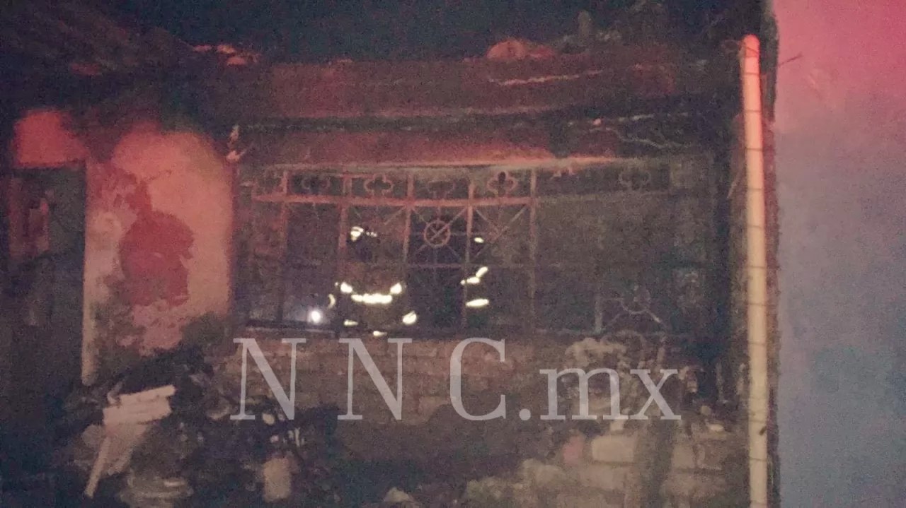 Tepic, Nayarit.- Fuerte incendio registrado en la colonia Santa Teresita termina con humilde vivienda.