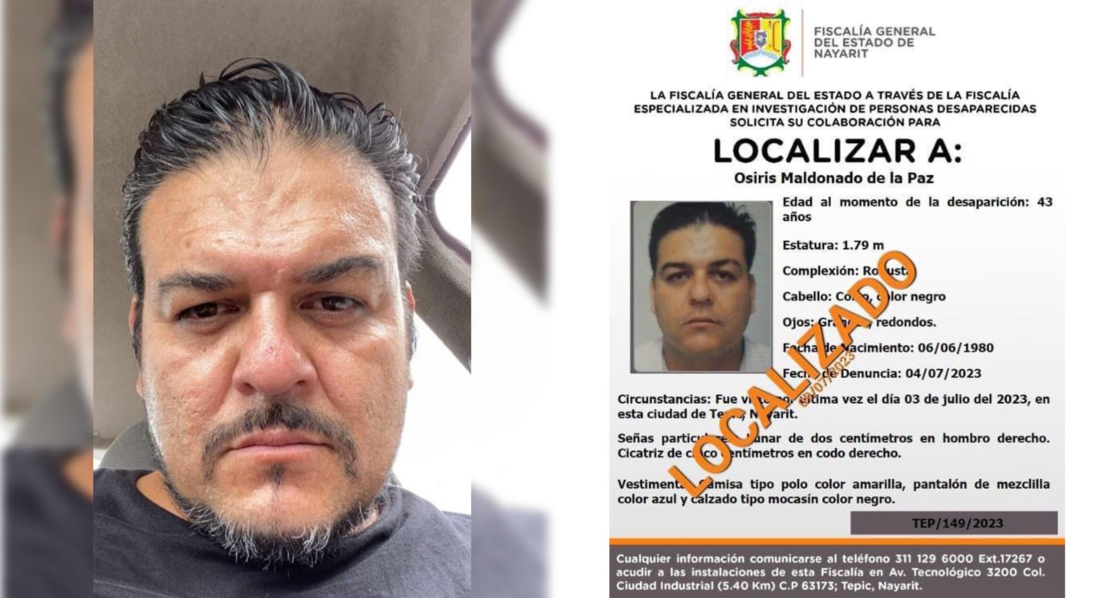 Después de realizar exhaustivas labores de campo e inteligencia en la ciudad de Tepic, se logró localizar con vida y en aparente buena condición de salud a Osiris Maldonado de la Paz. Este ciudadano fue reportado como desaparecido el pasado 4 de julio, luego de que sus familiares informaran de su ausencia desde el día 3 del mismo mes y año.