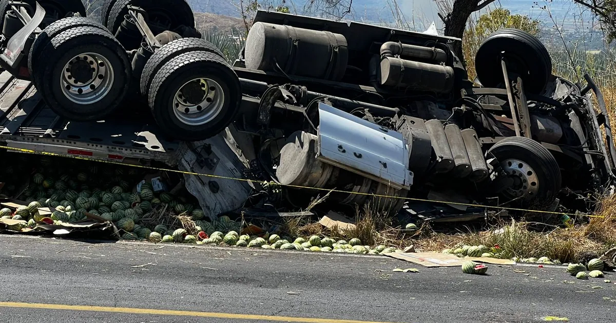 Un motociclista perdió la vida este día en la Carretera Federal 15 Tepic-Guadalajara, a la altura del kilómetro 176 en el municipio de Santa María del Oro, Nayarit, tras ser impactado por un tráiler que se volcó mientras transportaba sandías con destino a Guadalajara.