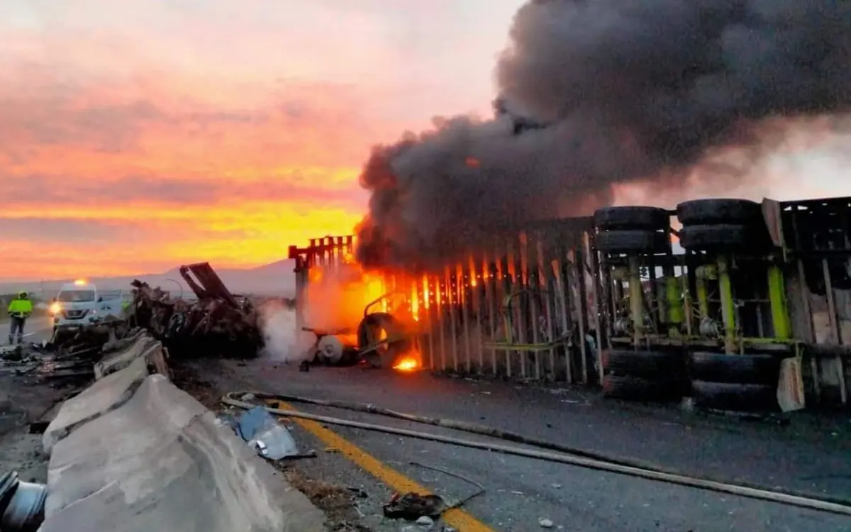 Esta segundo coche involucró al tráiler que terminó chocando con el primer coche, volcó y se incendió.